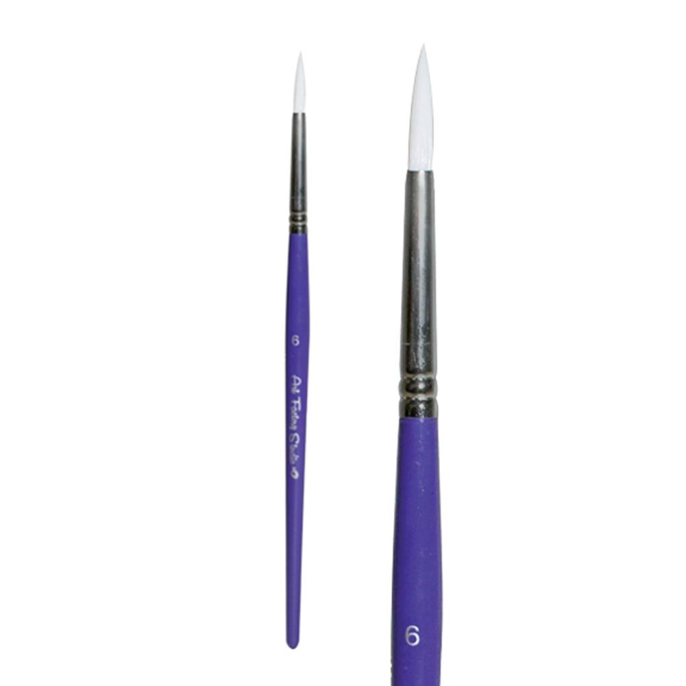 Art Factory Studio Brush - Round #6 comes with white synthetic bristles, ideal for painting large sized tear drops. Applicator with a glazed wooden handle and nickel plated ferrules, is easy to clean after each use. Brush is 7 and 1/2" long. Brush head is 1/16" wide at the base with 5/8" long bristles. Art Factory brushes have synthetic bristles, made without harming any animal in the process.